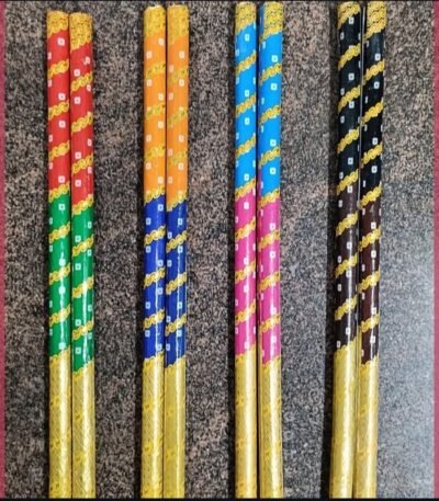 10931 Small Dandiya Sticks for Kids – Lace Decorated Wooden Dandiya Sticks for Dance Garba – Navratri Celebration Multicolour & Random Designer Size-9.5 Inches {1 pair }