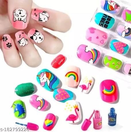 - The size is suitable for girls of 4 years to 10 years, the designs of nails are cute and would be random as per availability