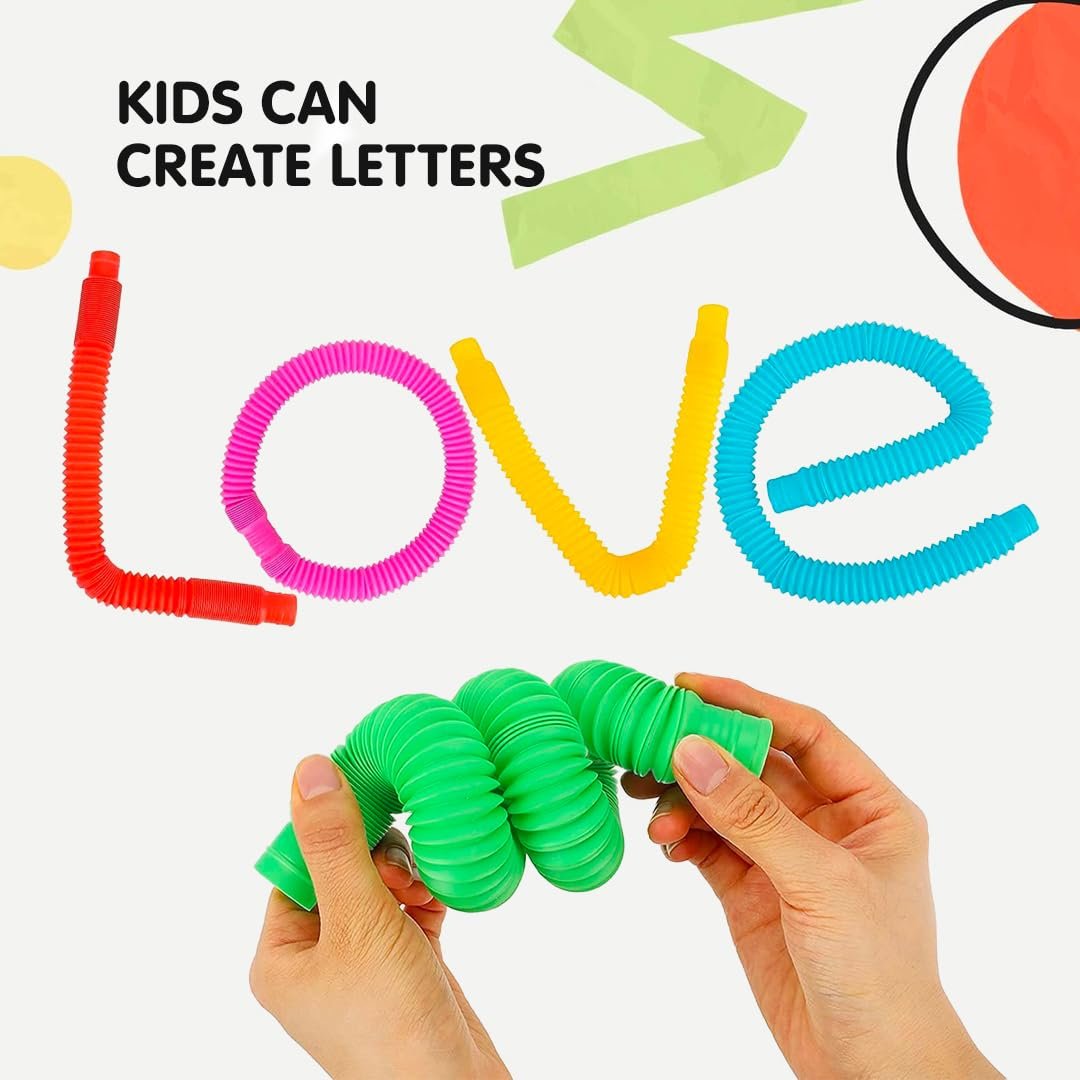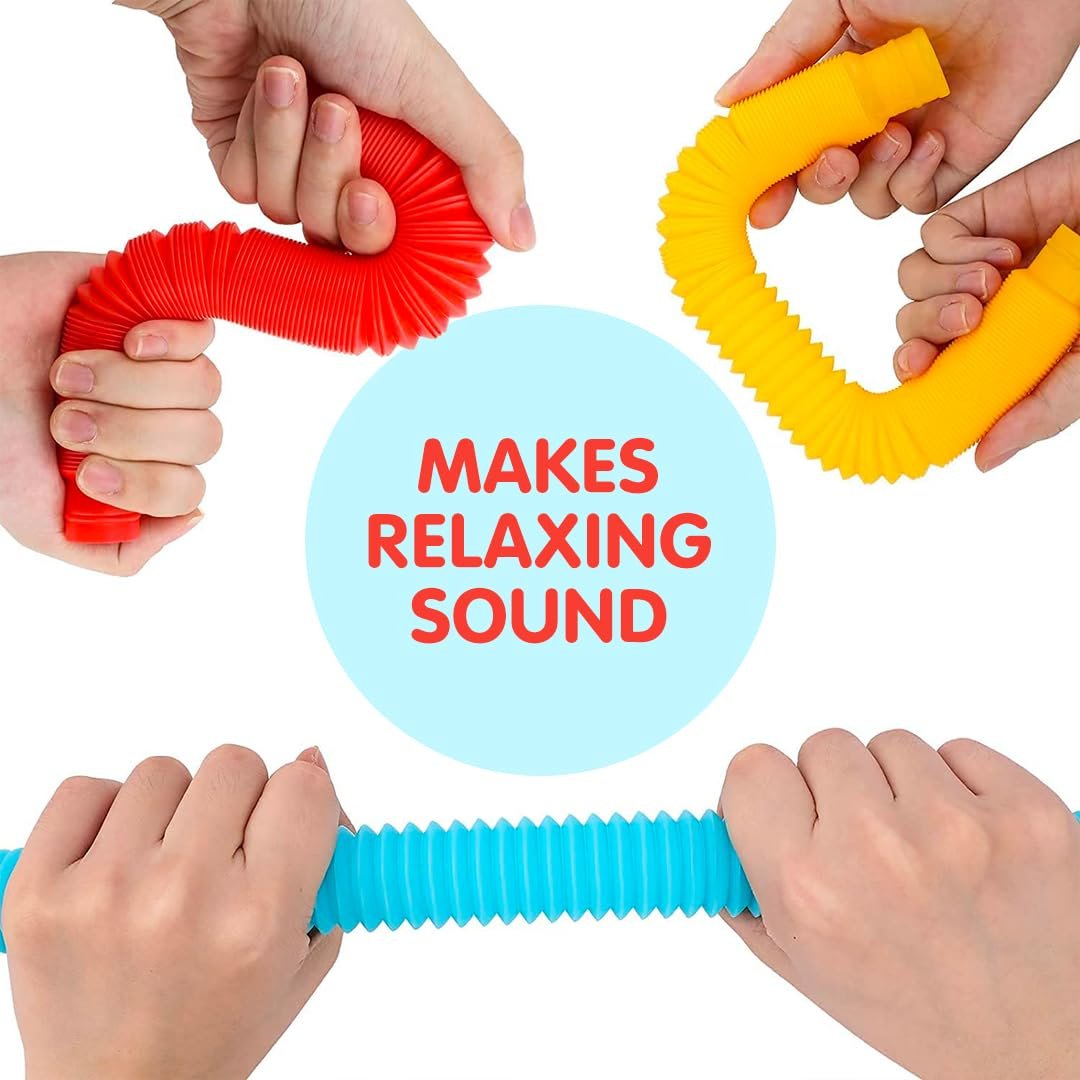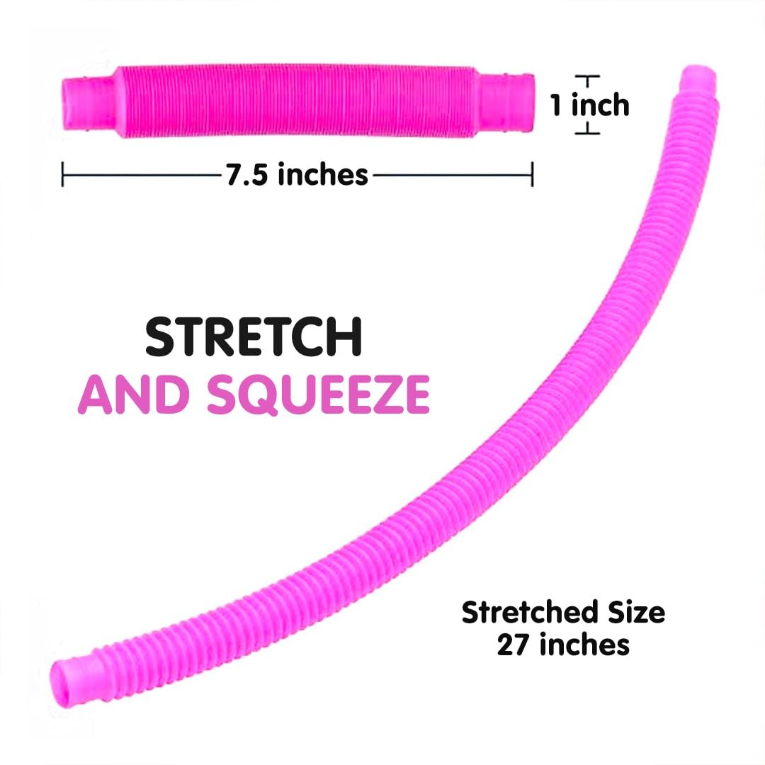 - Fun Kids Stress Relief Sensory Toy: These durable flexible pop tubes can stretch and twist into any shape with fun pop sounds that stimulate your ears. Children will love hearing this wonderful sound. These also help calm sensory-seeking children and develop their imagination and hand-eye coordination. Great for kids with ADHD, ADD and physical therapy.