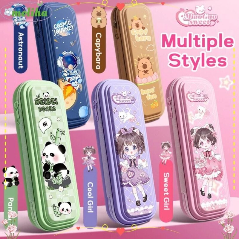 10631 Barbie pouch Princess Pencil Big Hard Embossed Frozen Pouch With Pencil Box With Calculator Unicorn Pencil Box Space Pencil Box