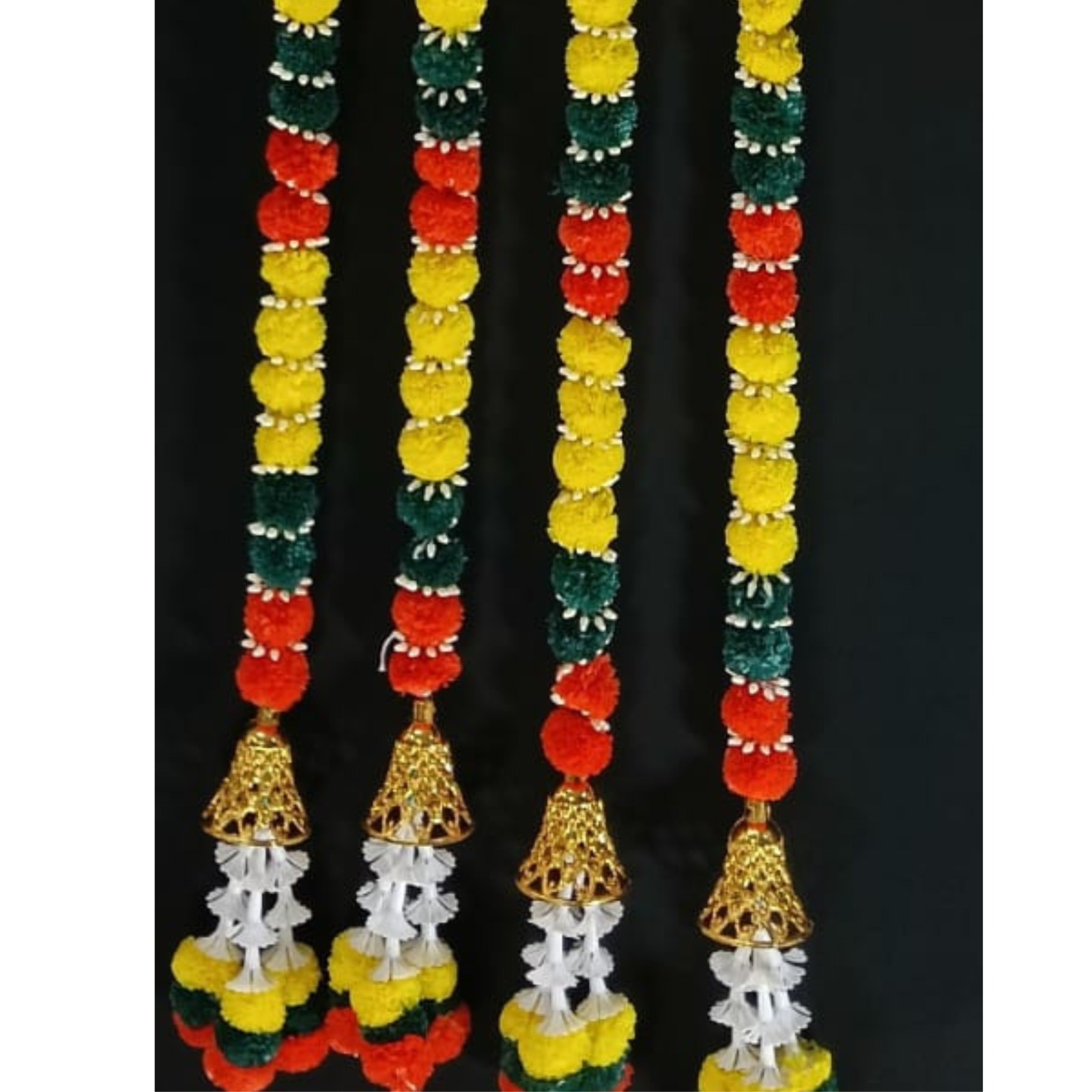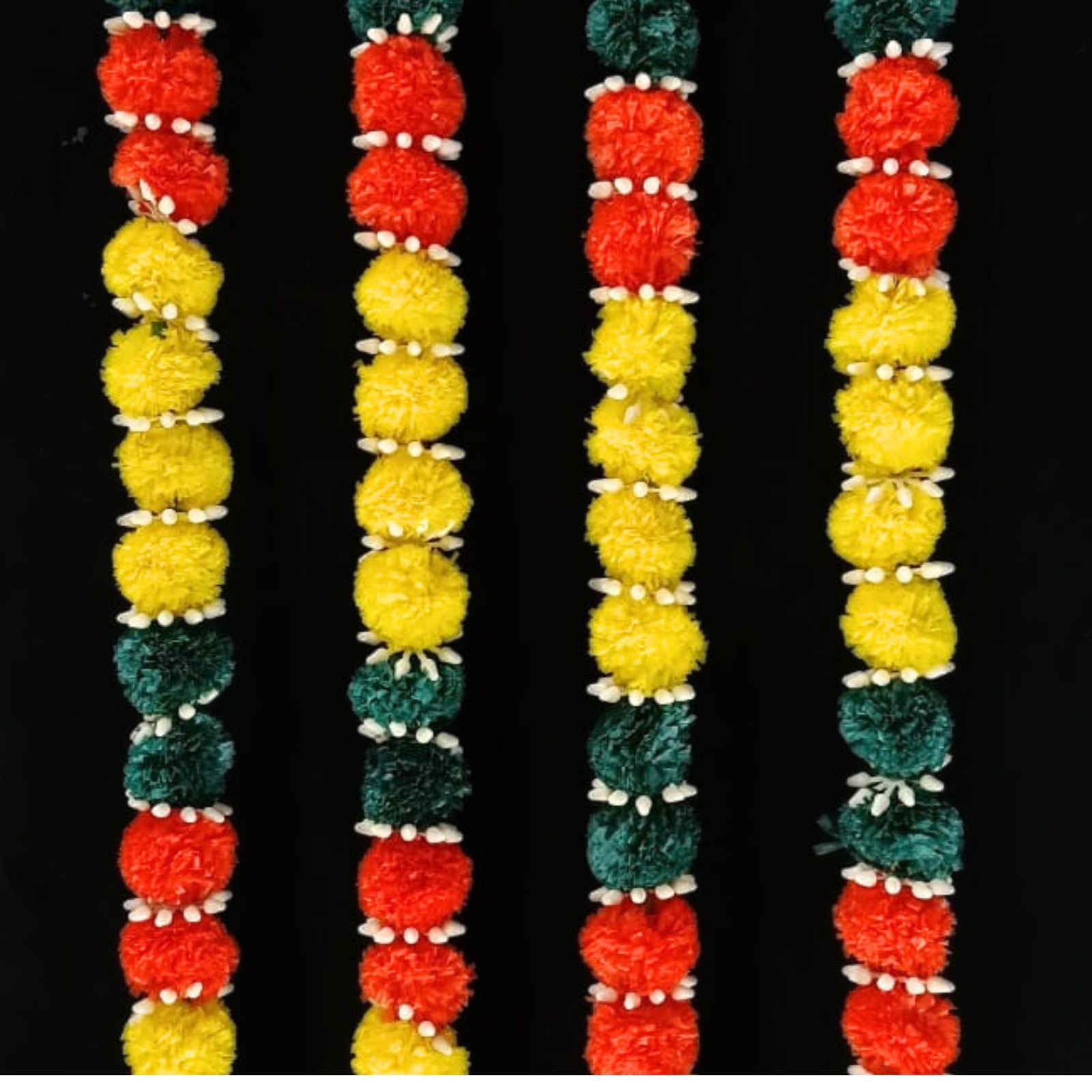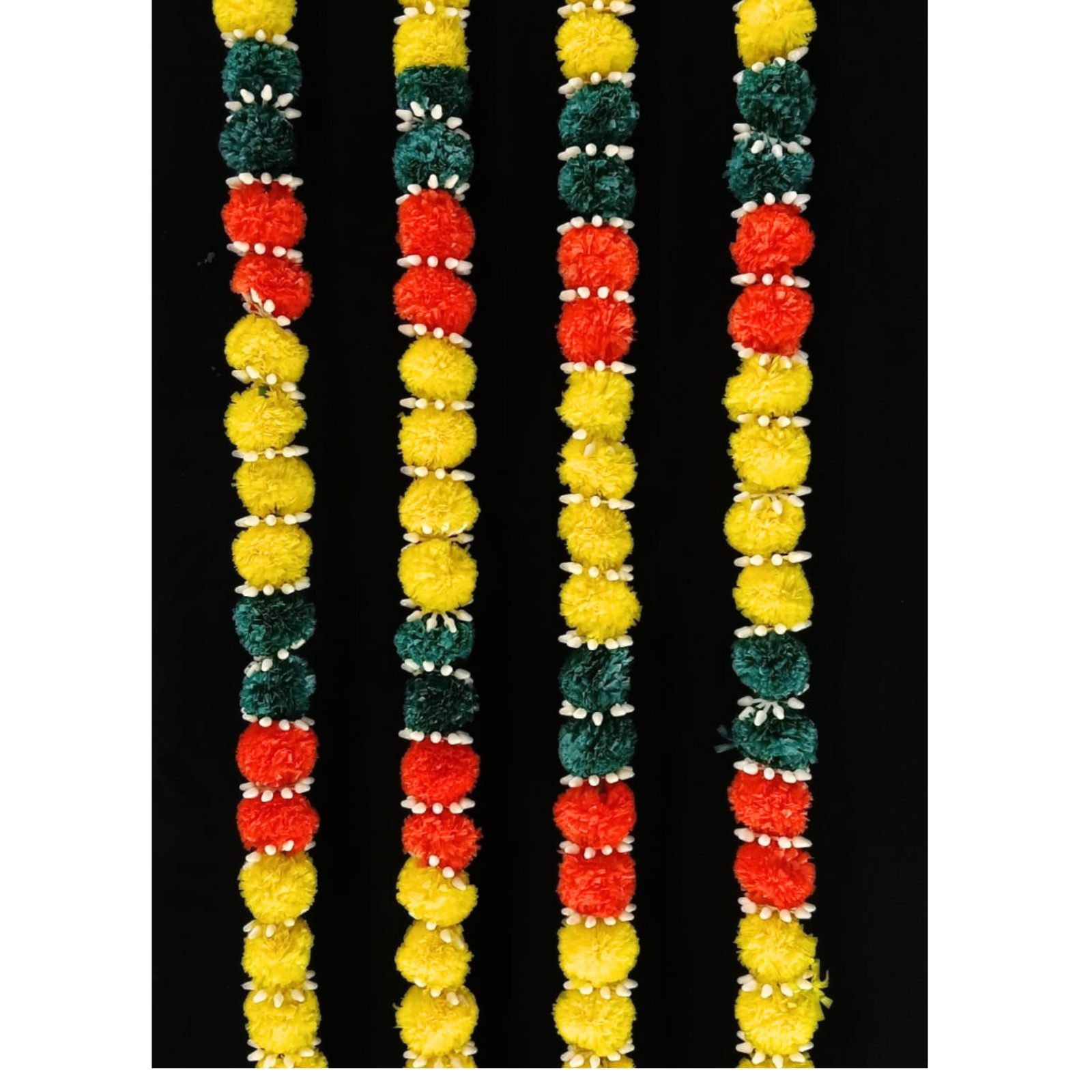10936 {6PCS} Artificial Marigold Flowers Hanging With Main For Door, Festival Decoration, Wall Hanging, Wedd`ing, Pooja Ghar Decoration Size-5 Feet {Multicolours}