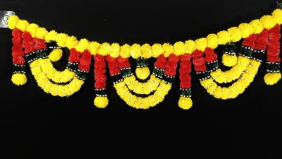 10967 Traditional Indian Handmade Marigold Toran – Reusable Fancy Door Hanging/Bandarwal for Home, Festival & Wedding Décor | Indoor & Outdoor Decorative Garland {3 feet}