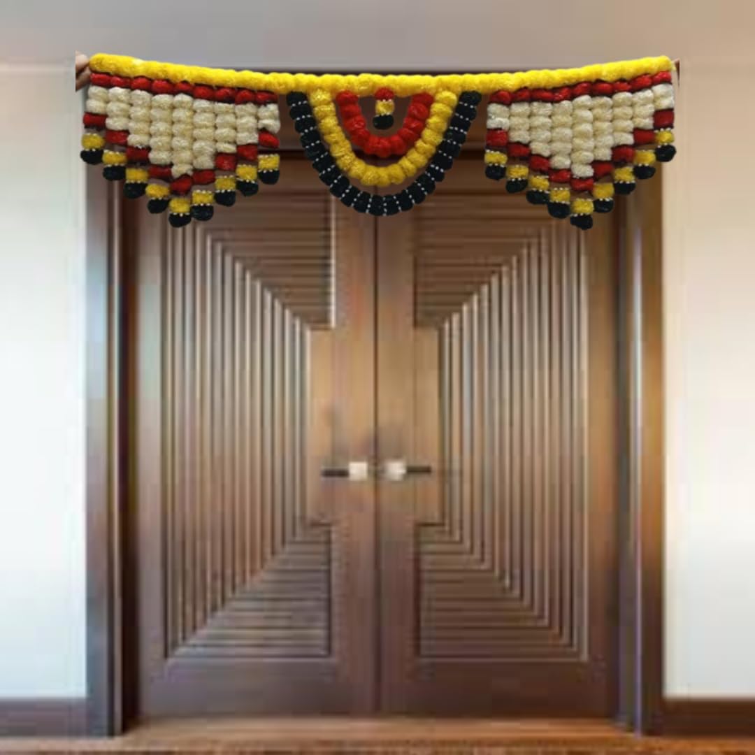 10968 Artificial Marigold Garland Flowers for toran Decoration for Door Decoration Toran Genda Phool for Wedding/Festivals Toran Diwali, Navratri, Home Decoration Multicolours 3.5 Feet.