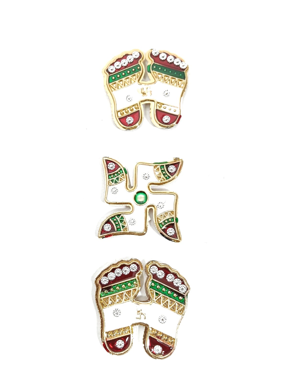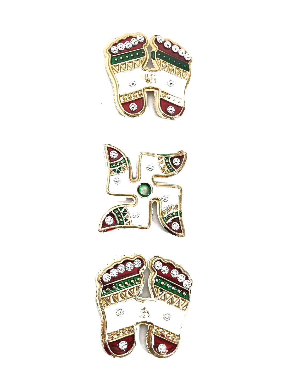 11019 Swastik and Laxmi Charan Paduka for Main Door Entrance Pooja Room Diwali Decoration Items Home Mandir Wall Decoration self Stick on Wall Floor Door Size 2 inch.