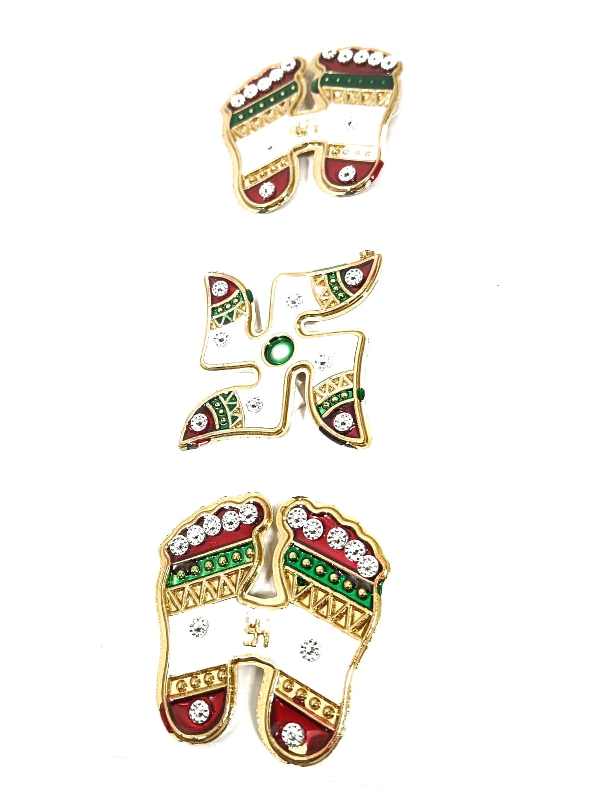 Be the first to review “11019 Swastik and Laxmi Charan Paduka for Main Door Entrance Pooja Room Diwali Decoration Items Home Mandir Wall Decoration self Stick on Wall Floor Door Size 2 inch.”