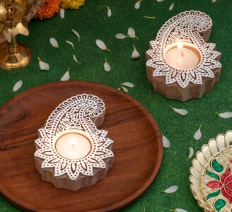 Enhance The Warm Glow Of Tea Light Candles With This Simple, Natural Design. It’s The Perfect Gift Choice And Can Be Used In Diwali Home Decorations And As Diwali Gifts. This Natural Wood Tea Light Holder Is Ideal For Home Decor, Weddings, Parties, Dinners, And Various Themed Events.