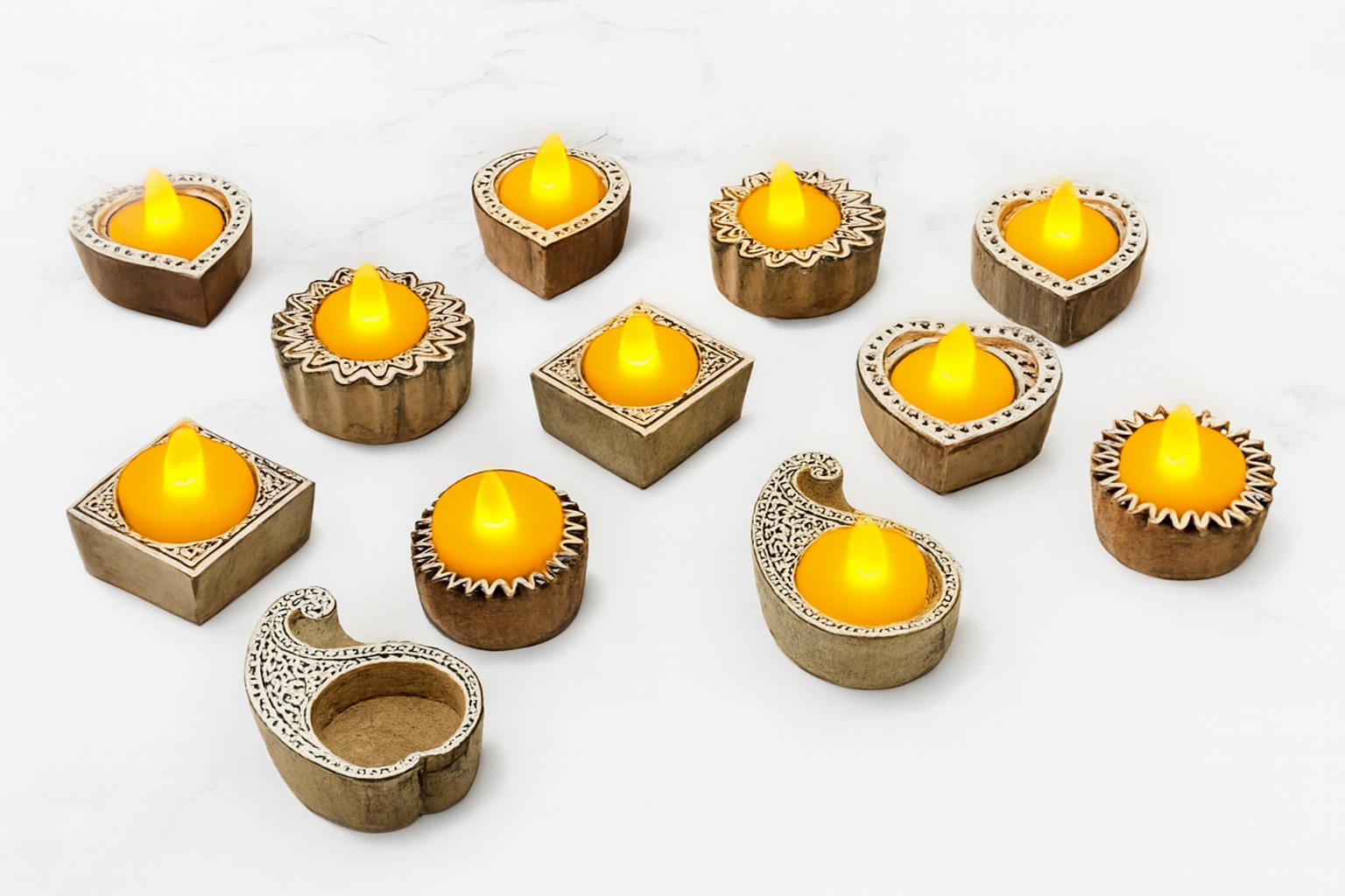 11051 {10 Pcs} Wood Candle Holders Wood Tealight Candle Holder Tea Lights Candle Holder Diwali Decorations for Home Diwali Gifts Wooden Candle Holder Tea Light Candle Holder Rustic Candle Holder {Random Design}
