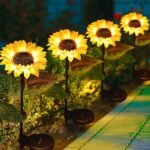 🌻 BRAND NEW UPGRADED Solar Sunflower garden outdoor lights have larger sunflowers made of upgraded silk material for a more realistic looking flower. Unlike others our Sunflower comes with wider solar panels AND has more lights which in return will penetrate sunlight more efficiently over our competitors even in cloudy weather.