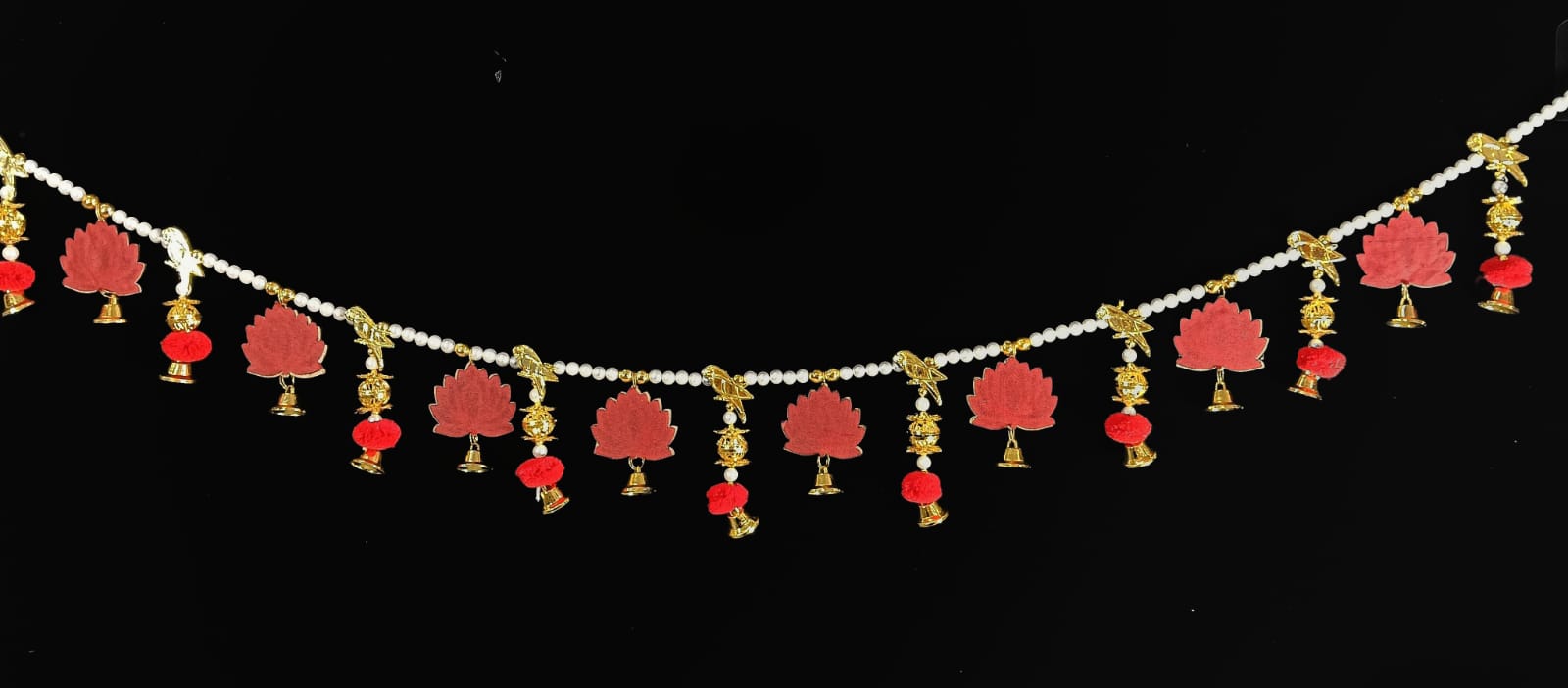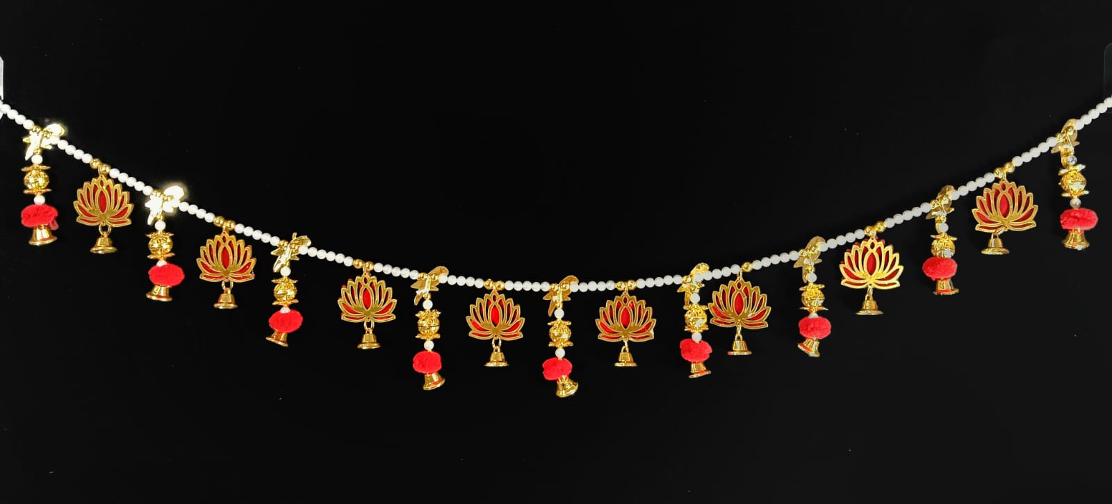 Size:3 Feet Enhance your living space with the lotus and red Pom Pom Toranan, Rajasthani-inspired door hanging.