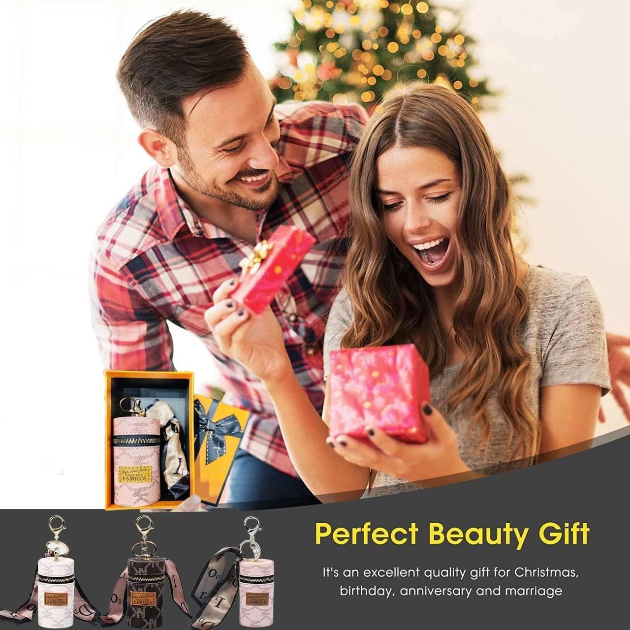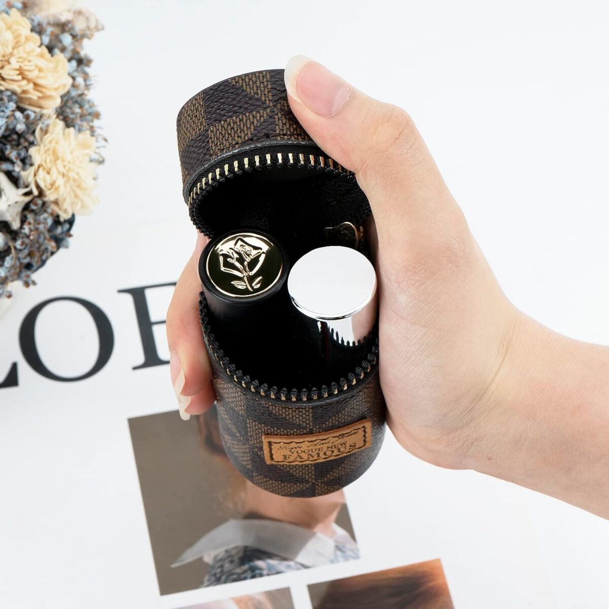 • 【High Quality Material】The leather lipstick bag is made of high quality leather which is water resistant. The gold metal keychain is exquisitely crafted and will not fade. Matched with soft ribbon, it is fashionable and pretty.
