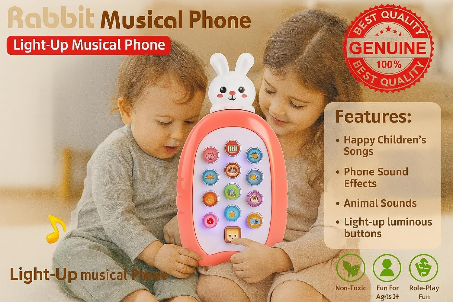 • MULTI-FUNCTION TOY: Features 12 interactive buttons including children’s songs, piano music, soothing music, phone effects, transportation sounds, weather effects, and animal sounds