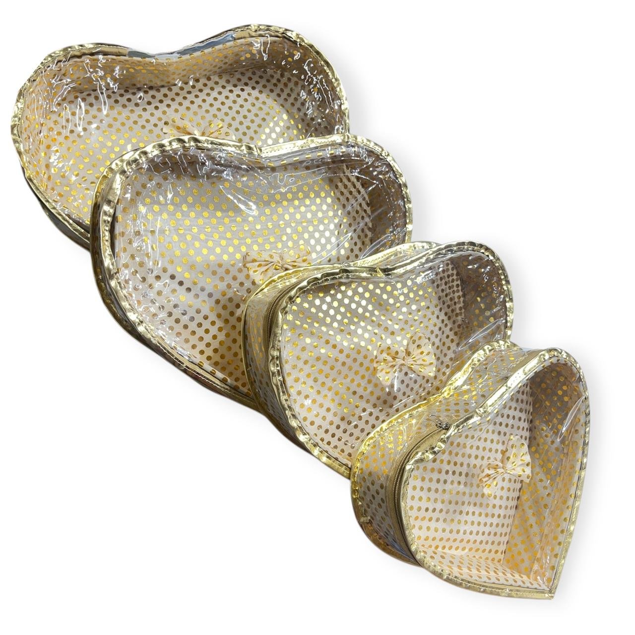 Original price was: ₹599.00.₹320.00Current price is: ₹320.00.11240 Set – Pack Of 4 Pouch Heart Shape Transparent Jewellery Organiser Pouch Multipurpose Makeup Cosmetics Bag Travelling Pouch Dulhan Wordrobe Organiser {Random Design}