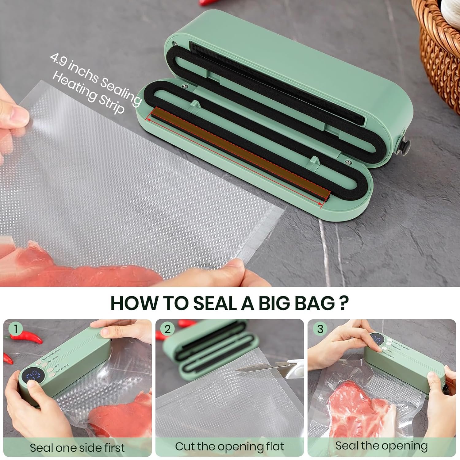 - 【Powerful Suction & Digital Display】 Our mini vacuum sealers for food storage equipped with a robust 60kPa suction pump, this meat vacuum sealer efficiently completes sealing in 10-20 seconds, providing superior vacuum levels; Intuitive digital controls with LED display allow easy selection of desired mode and sealing time