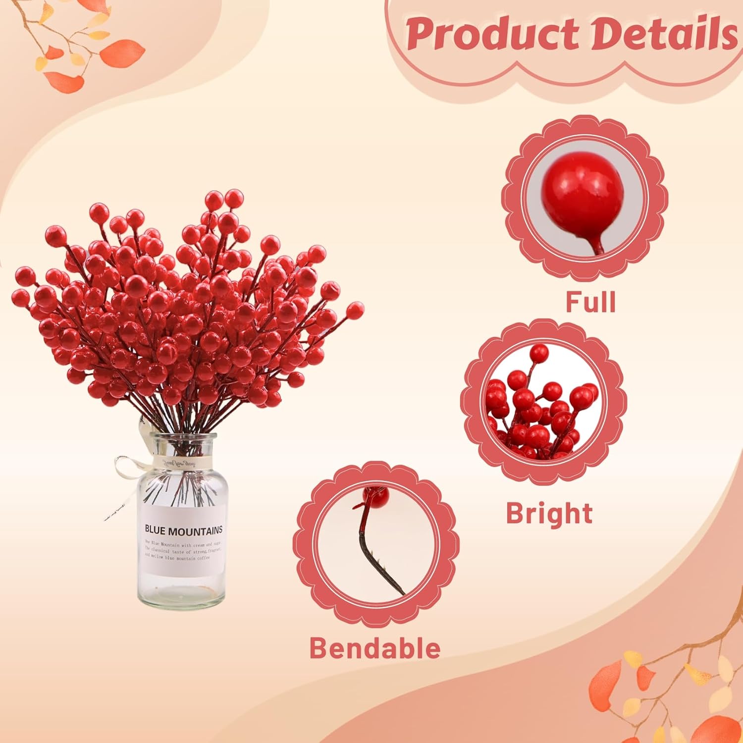 • 🍒DIY Project:You can DIY red berry stems according to your own ideas. It can create a festive atmosphere for your event. Artificial red berries are small parts. Not suitable for children under 3 years old