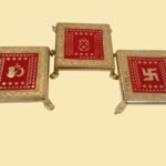 11347 Decorative Swastik, Om, Kalash Chowki, Gold-Plated Plastic Stand with Red Enamel Design 15 Cm