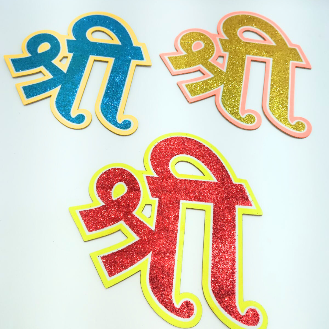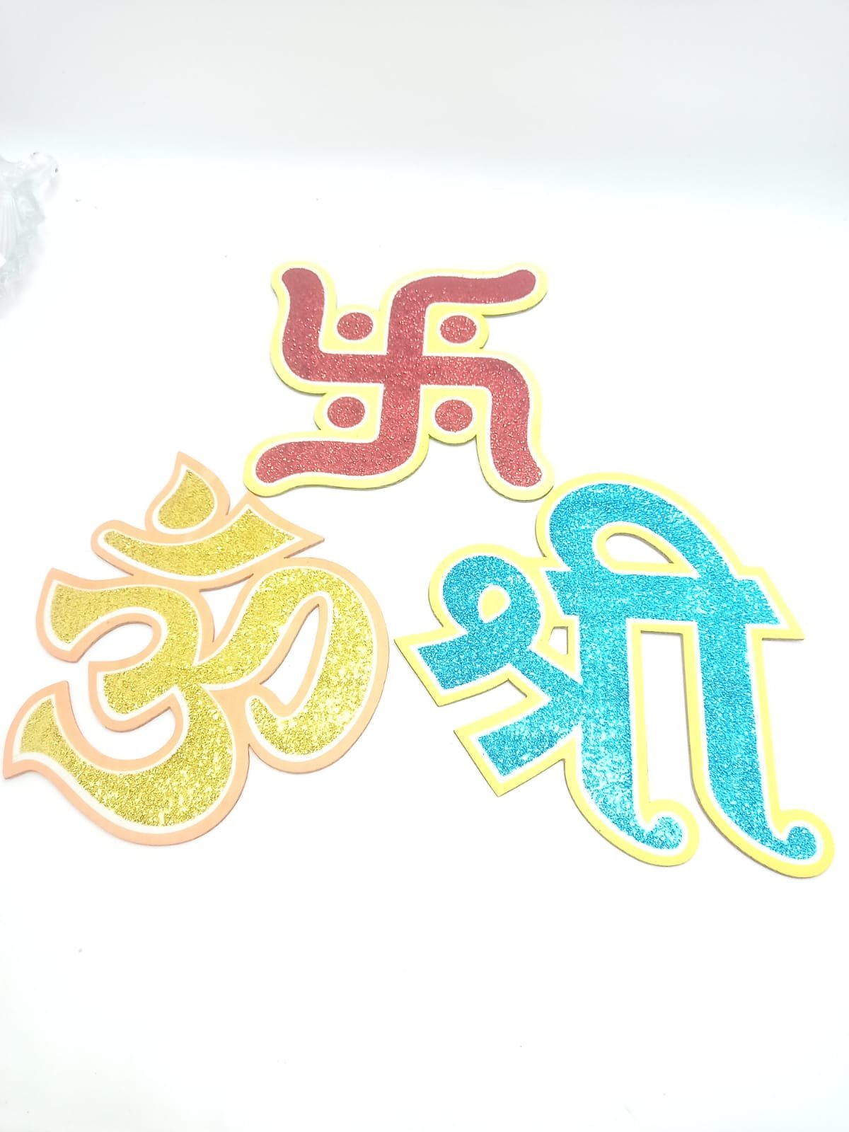 1168 ( 3 pcs -Om Swastik Shree ) Glitter Cardboard Decoratives.