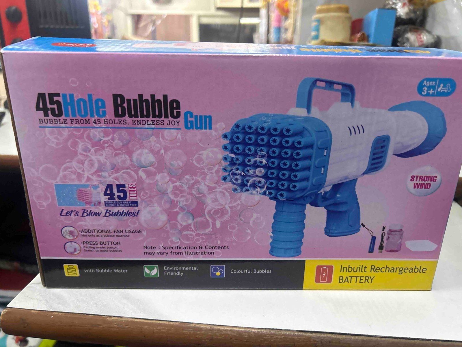 Original price was: ₹199.00.₹68.00Current price is: ₹68.00.20124 45 Holes Big Bubbles Gatling Machine, Battery Operated Electric Gun Toy Toy Bubble Maker