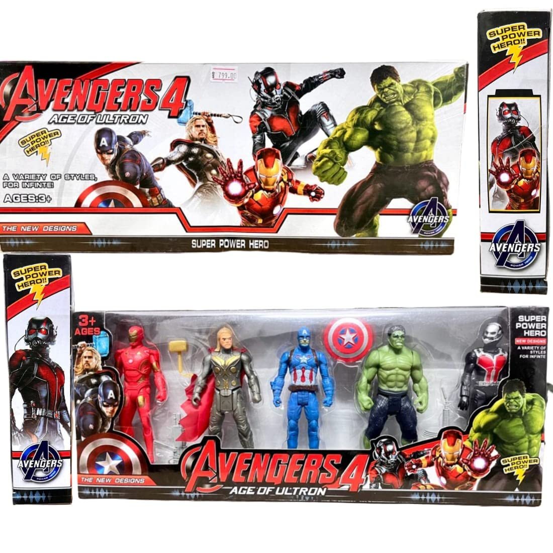 • Pack Of 05 Figures Including Ironman, Hulk, Captain America, Antman, Thor.