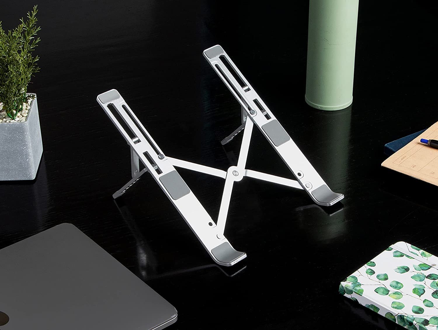 • Made from premium aluminum alloy and designed in an X shape, the laptop riser can easily hold up to 5 kgs of weight