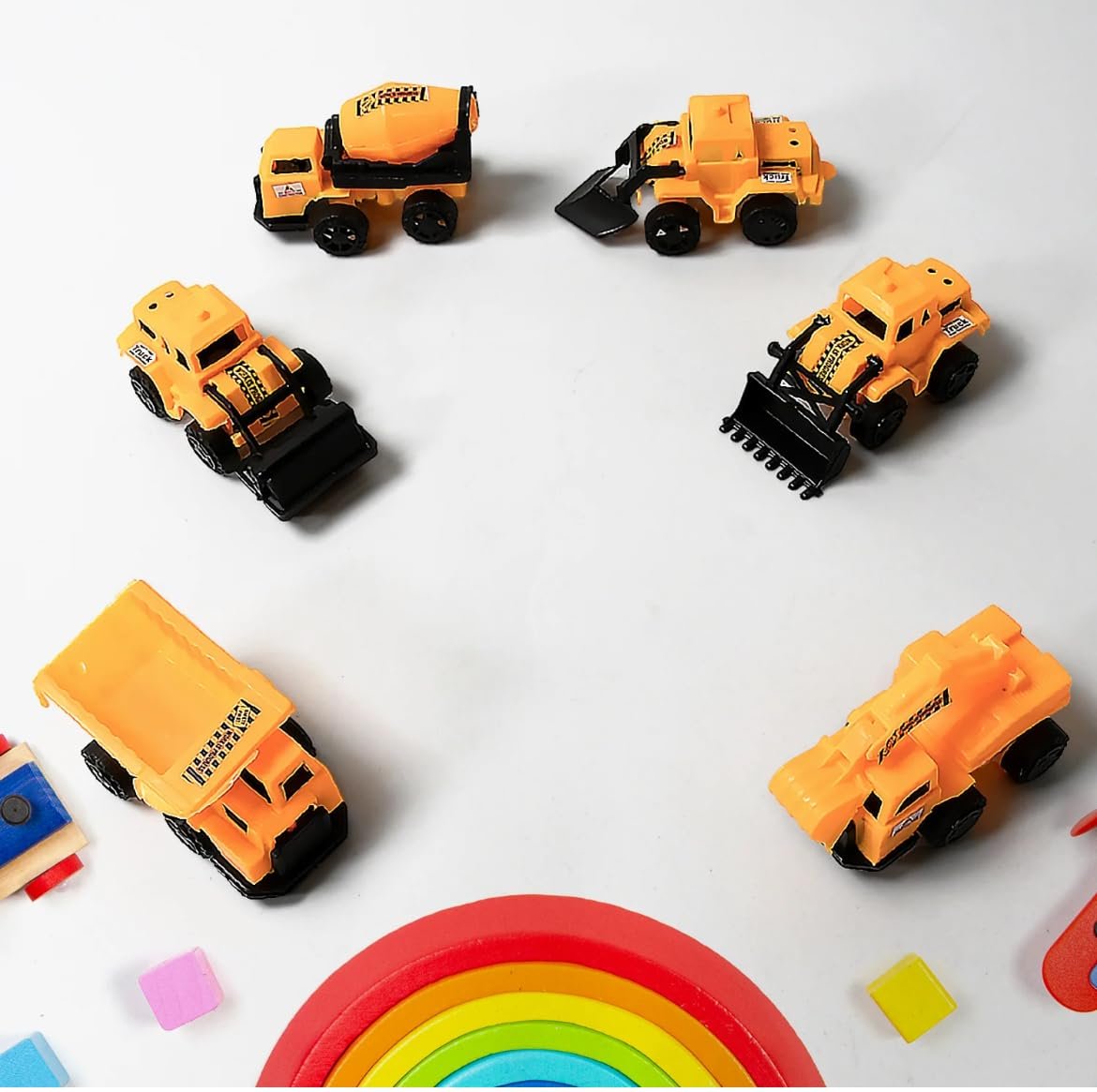 - Cement Mixer Toy, Excavator Toys, Digger Truck, Bulldozer Toy, Forklift Toy, Roller Truck & Hydraulic Excavator.