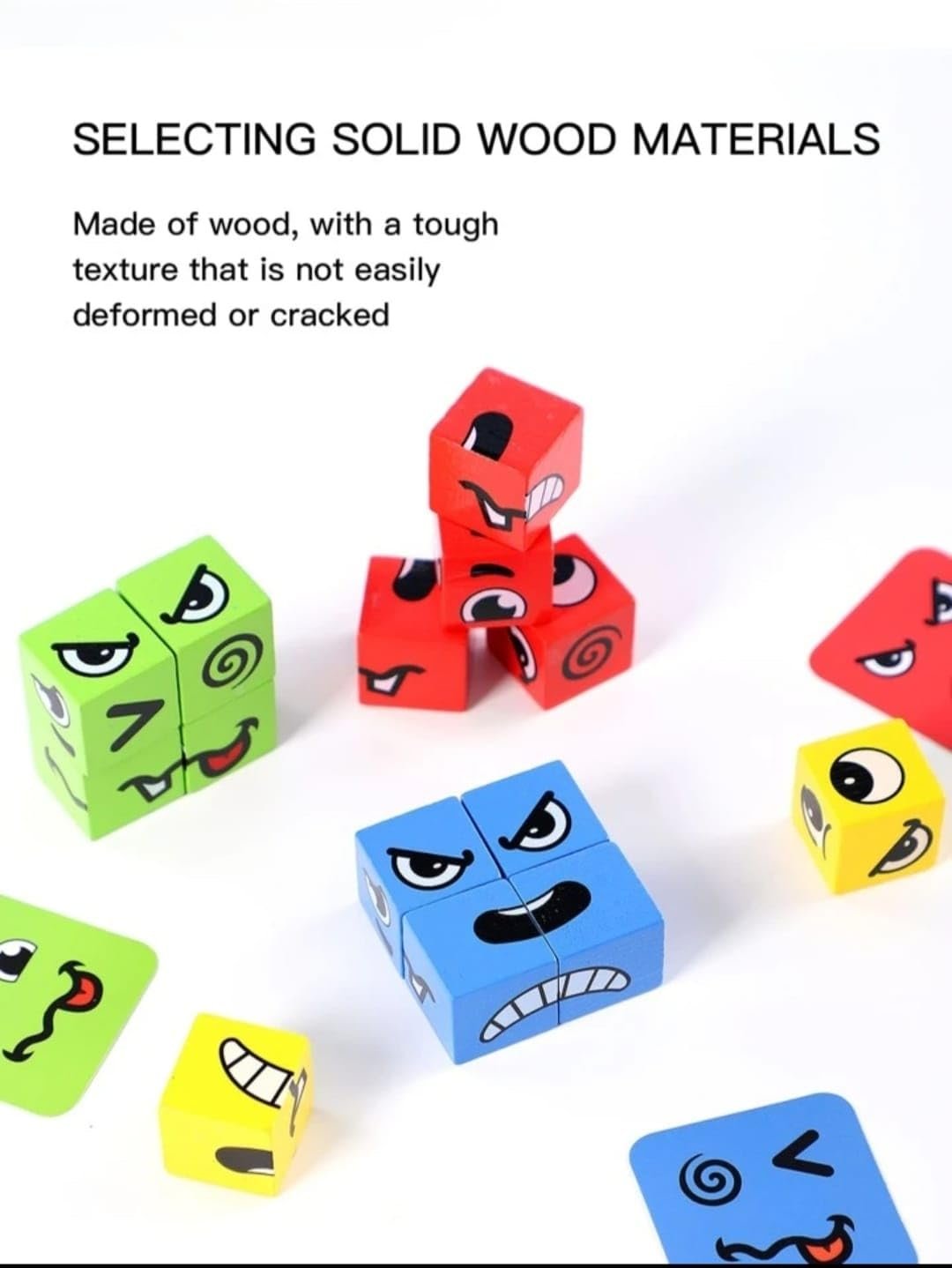 • Interactive Learning: The Emoji Cube is not just a game; it’s a tool for educational development. It helps children recognize and understand a wide range of emotions by matching the wooden cube’s faces to corresponding expressions.