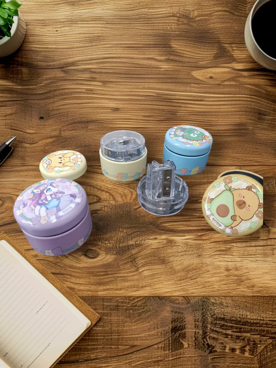 ✏️ Sharp, durable, and super cute – these Round Metal Sharpeners make learning fun! With four mix cartoon designs (Bear, Dinosaur, Bunny, Unicorn), these sharpeners feature a strong metal blade and a secure container for clean and smooth sharpening. Compact and colorful, they’re perfect for school, homework, and return gifts.