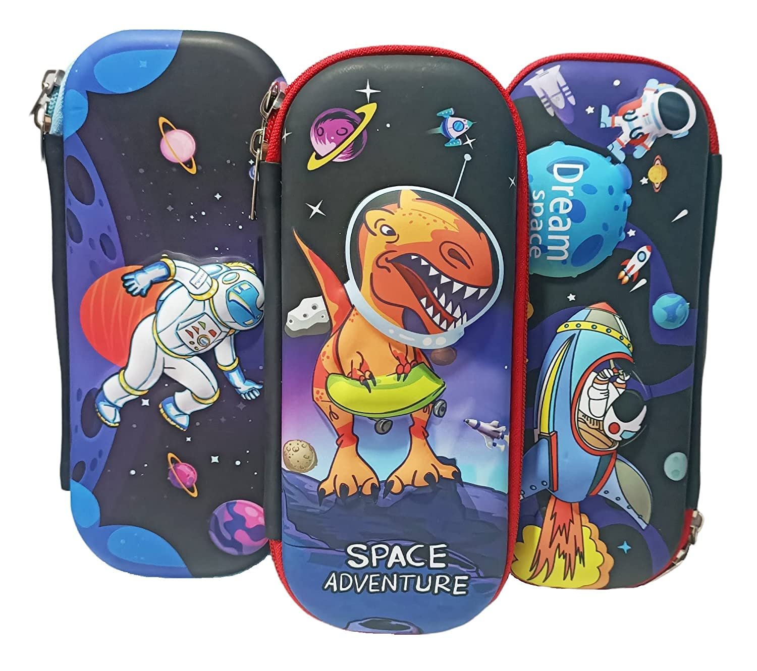 • ✔ EVA MATERIAL & EMBROSSED HARDTOP: This carrying pencil case is made of durable and stylish EVA material, compressive, shockproof, waterproof, all-round protection of stationery. Each of cute pencil case comes with a embossed SPACE OR DINOSAUR pattern on the front that gives a vivid look and make your kid happy.