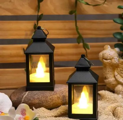 AA-2008-1 Electronic Candle Light Smokeless Flameless LED Light Lantern for Home Decoration Diwali & Christmas Smokeless Colour Black And White Diwali Decor Size 9cm *4cm*