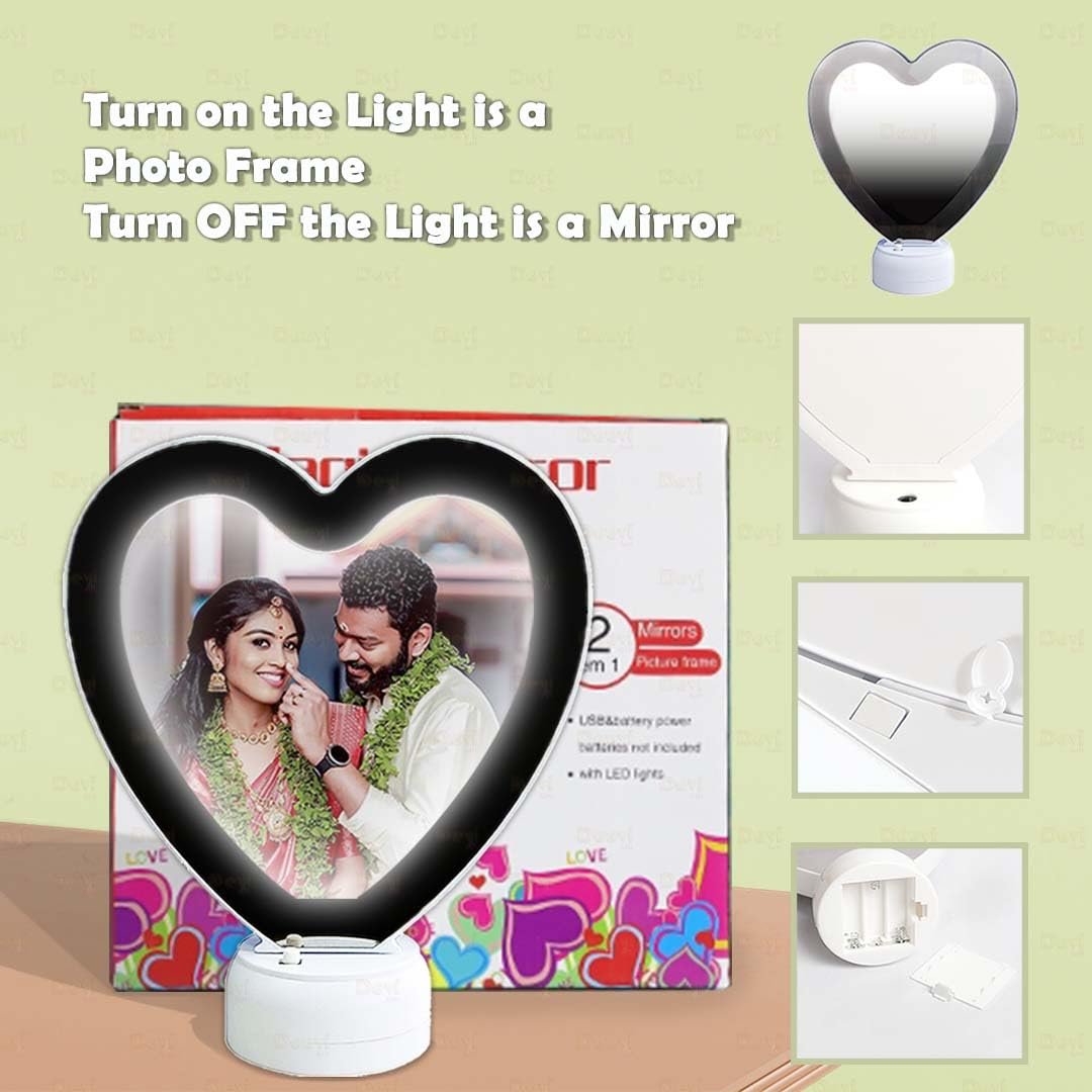 - Heartwarming Design: Photo appears with light on, mirror when off.