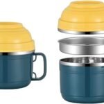 GBR-135 Double Layer Stainless Steel Noodle & Soup Bowl with lid and Handle, Tableware Infant Pasta, Soup, Rice, Food Storage Container for Kitchen
