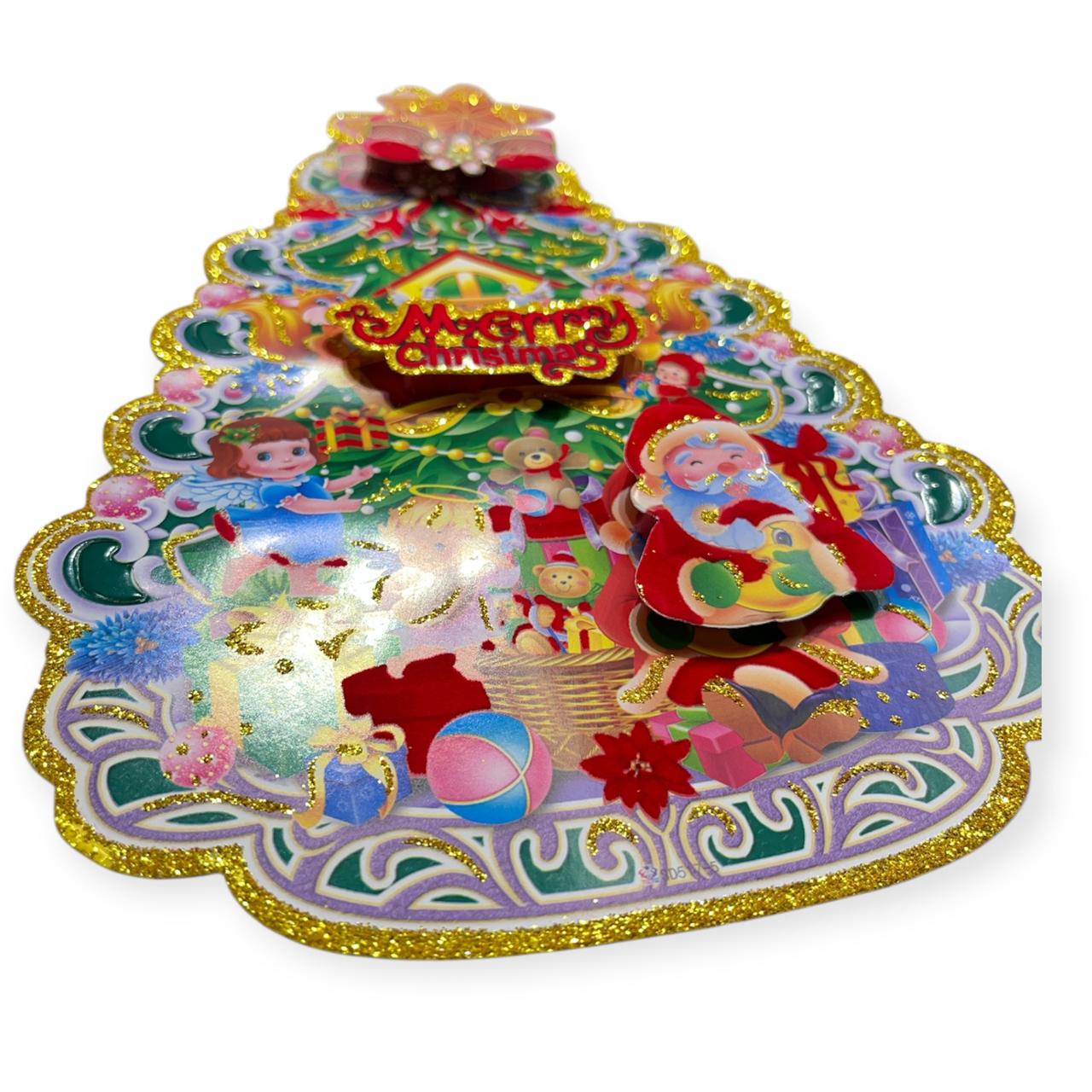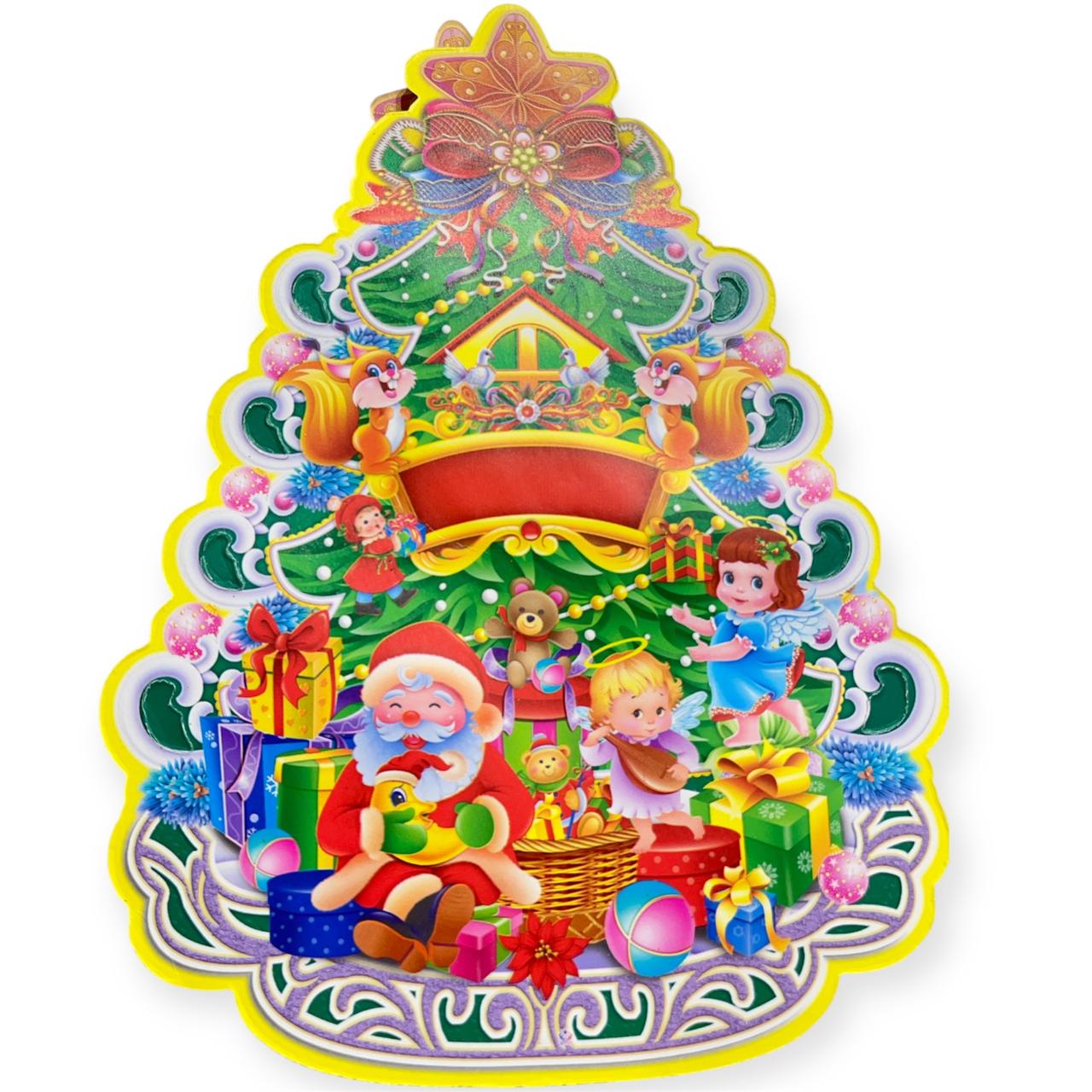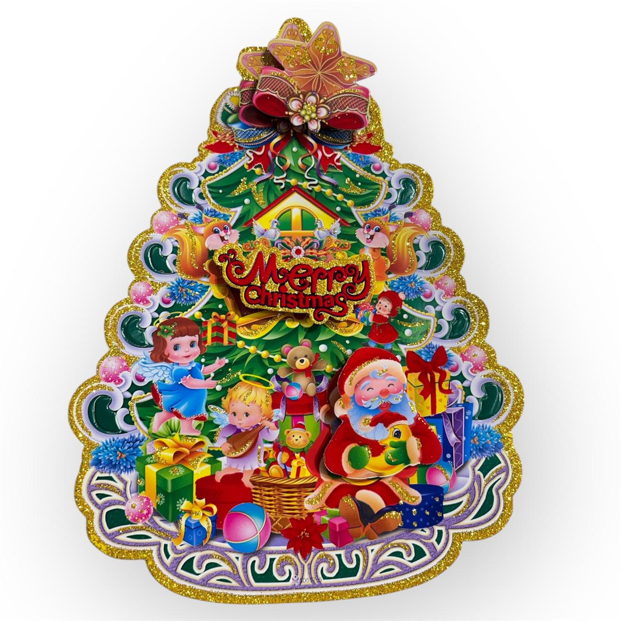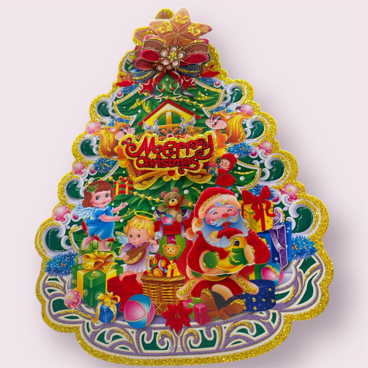 R-10-52 Merry Christmas – Santa Claus with X-Tree Beautiful Wall Stickers for House {23 Cm}