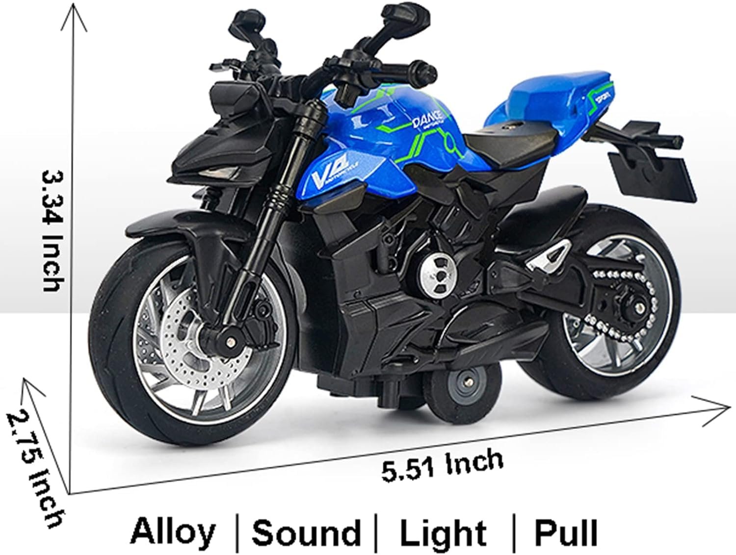- 【Great Gift Idea】With lights, sounds and friction powered go action, the alloy motorcycle toy makes a perfect gift for birthdays, holidays and other gift-giving occasions. Both boys and girls will entertain themselves for hours.-