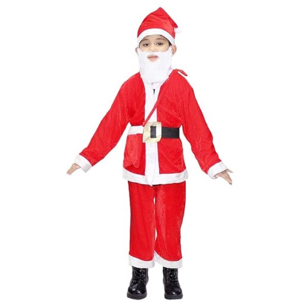 PST-852 Santa Clause Christmas Costume For Boys & Girls, Costume with Cap, Belt and Bag-Red & White/ 7-9 Month