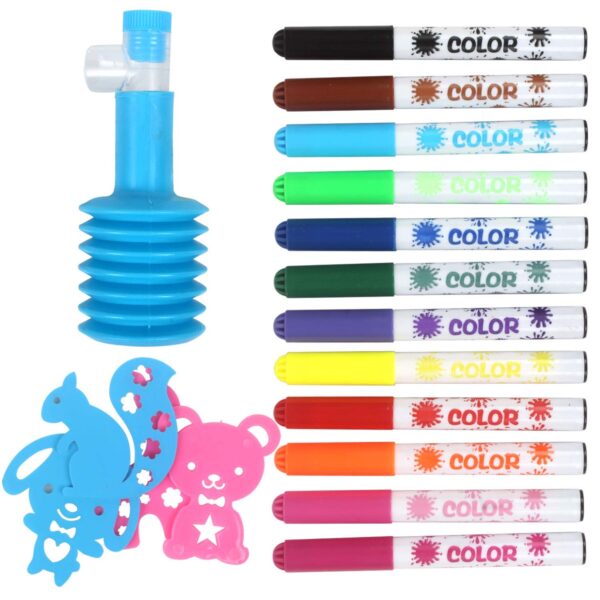728 {12 PCS} WaterColor Pen Set with Spray Cum Sketch Pen with Stencils Drawing set {Multicolor}