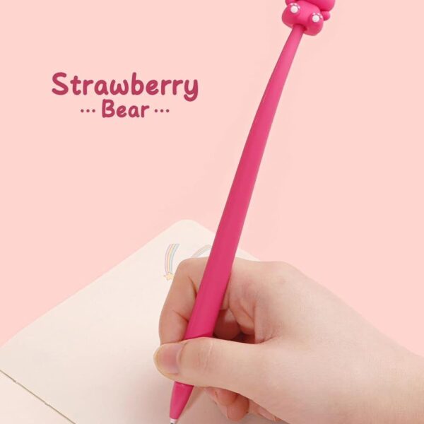 7244 Bear Floppy Pens for Kids Gel Set School & Office Lotso Bear Cartoon Pen Office, Strawberry Bear Pens, Kawaii Stationery Teddy Bear Pens for Girls Dancing Pens