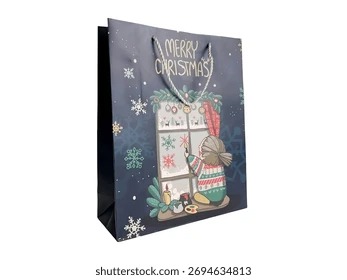 GBT-3676 Christmas Gifts Bags, Size= 13*10* 4* inch Christmas Tote Bags with Handles, black Xmas Bags Snowman for Presents Xmas {Random Design}